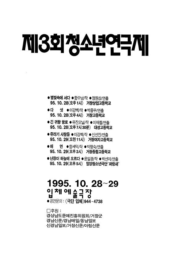 ※아래의 연극제 포스터 누르면 연극제 팜플렛을 열람 하실 수 있습니다.